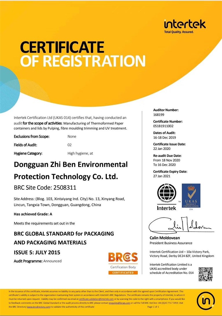 祝東莞市植本環(huán)保科技有限公司在創(chuàng)思維驗廠之家專業(yè)輔導下通過ITS BRC認證并取得A級證書