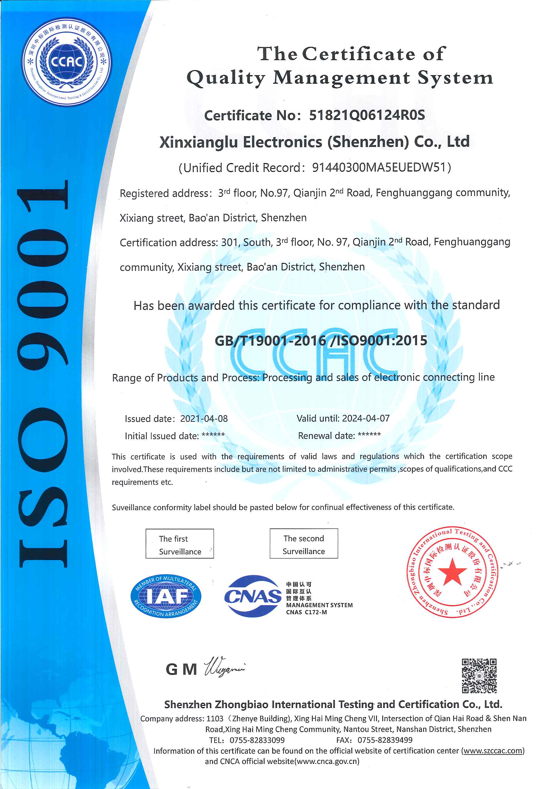 祝鑫翔鷺電子(深圳)有限公司通過ISO9001認(rèn)證質(zhì)量管理體系