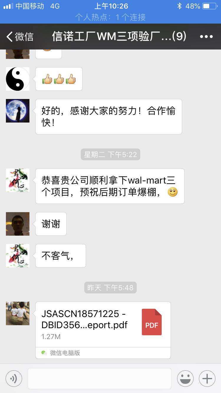 祝賀信諾運動用品有限公司順利通過Wal-Mart三項驗廠!